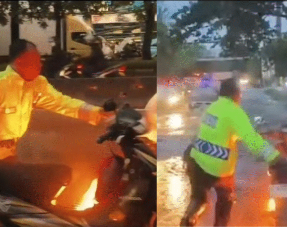 Detik-detik Menegangkan Motor Terbakar di Tengah Banjir Jakbar, Polisi Padamkan Api Pakai Air Genangan